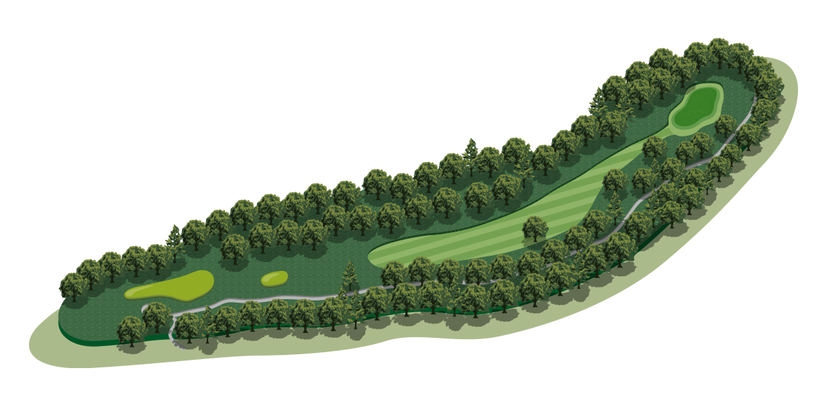 四桿洞,左狗腿洞。避免右側。左側比看起來更寬。仔細檢查孔位置。(2-階段-綠色)