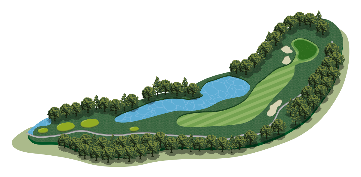첫 번째 샷에는 물을 피하세요. 항상 그린 중앙을 겨냥하세요. 그린 주변에서 치핑이 까다롭습니다.