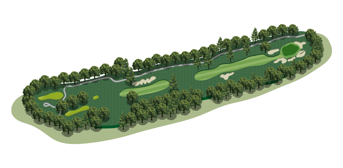 직선 파 5. 풀 드라이브를 보여주세요! 그린 전 벙커를 조심하세요.